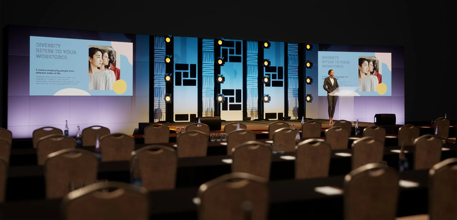 The 3D models and venues are pre-built to a high quality, realistic standard, which means that you don't have to spend time making things look realistic.